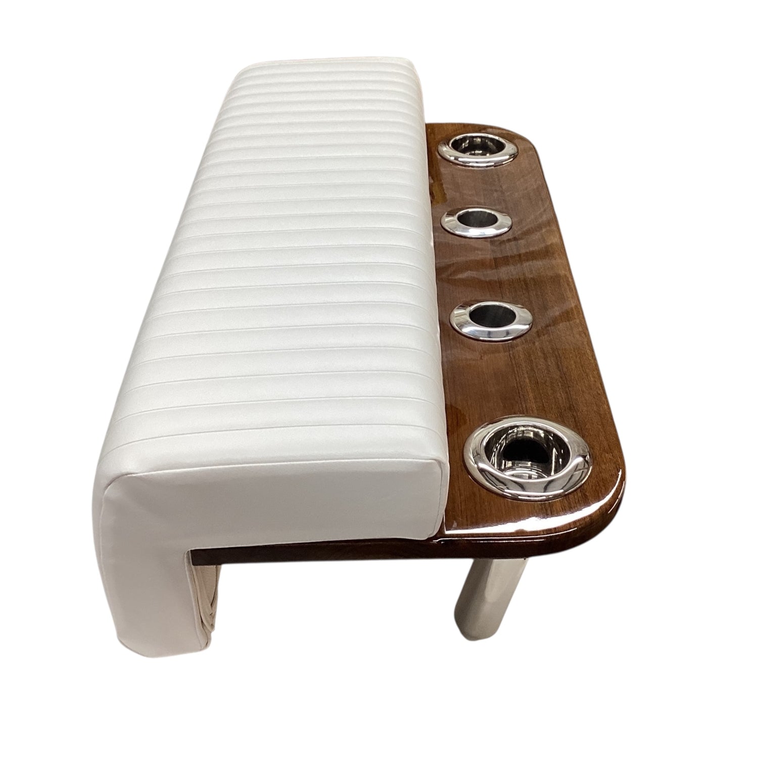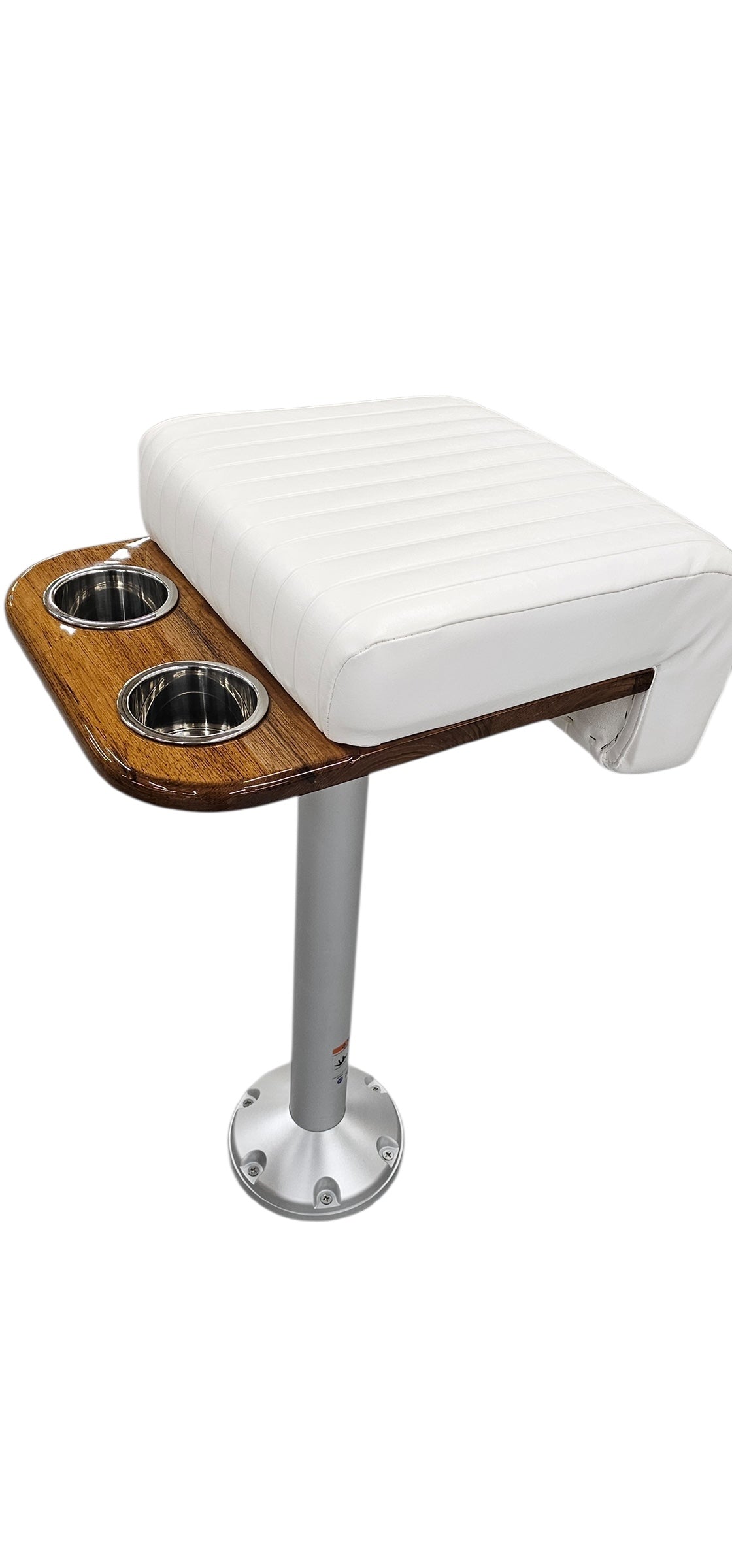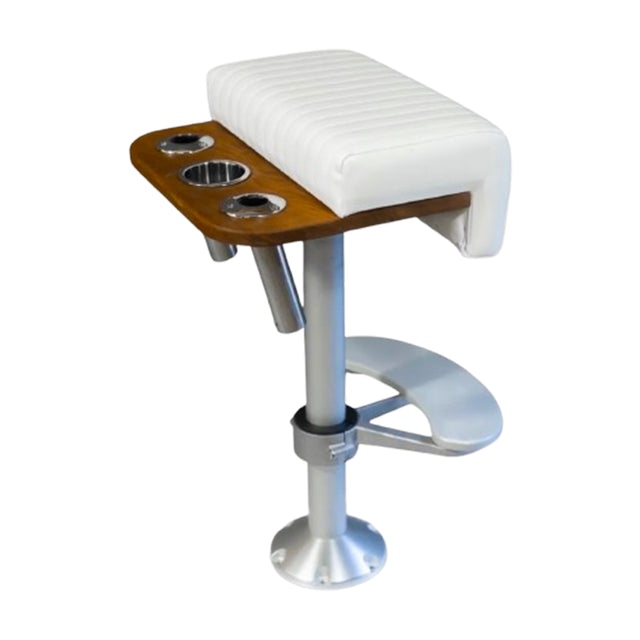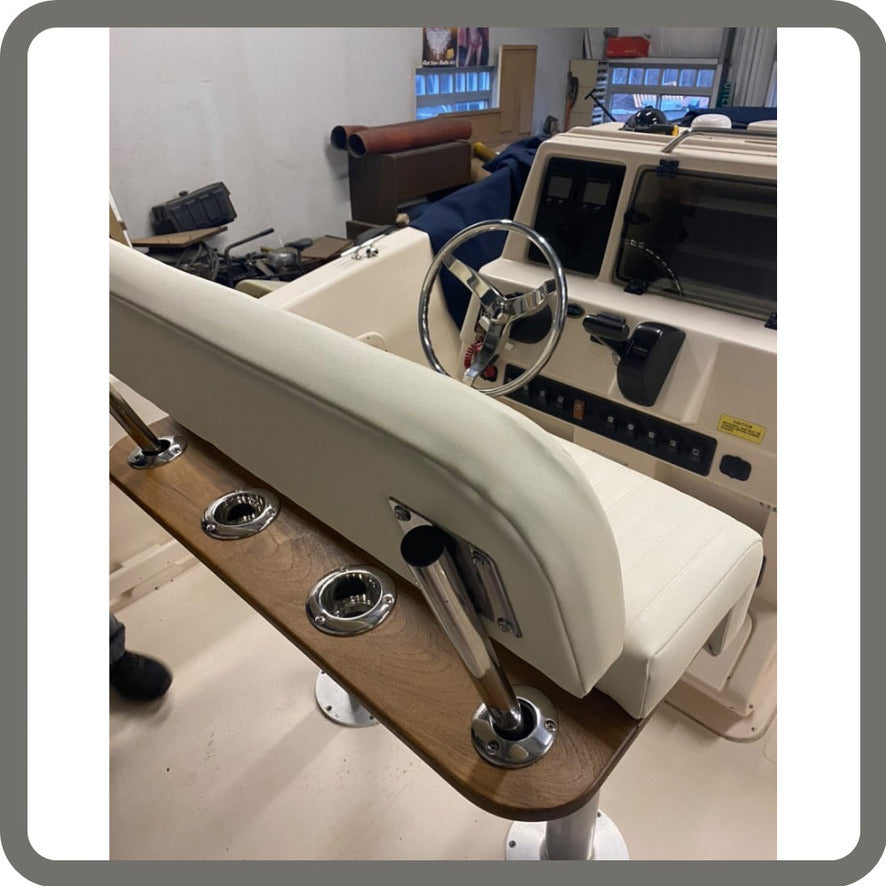 This ruggedly-constructed 20-inch teak wood leaning post with integrated 2-rod rocket launcher is the ultimate compact upgrade for your existing helm seat. Multi-functional, this piece provides comfort and convenience while fishing or driving at the helm. This product is built-to-order in our Connecticut shop – meaning you can always customize the size, configuration, design, upholstery, and more. With nearly 3 decades of experience, we are always happy to discuss exactly what we can build for you.