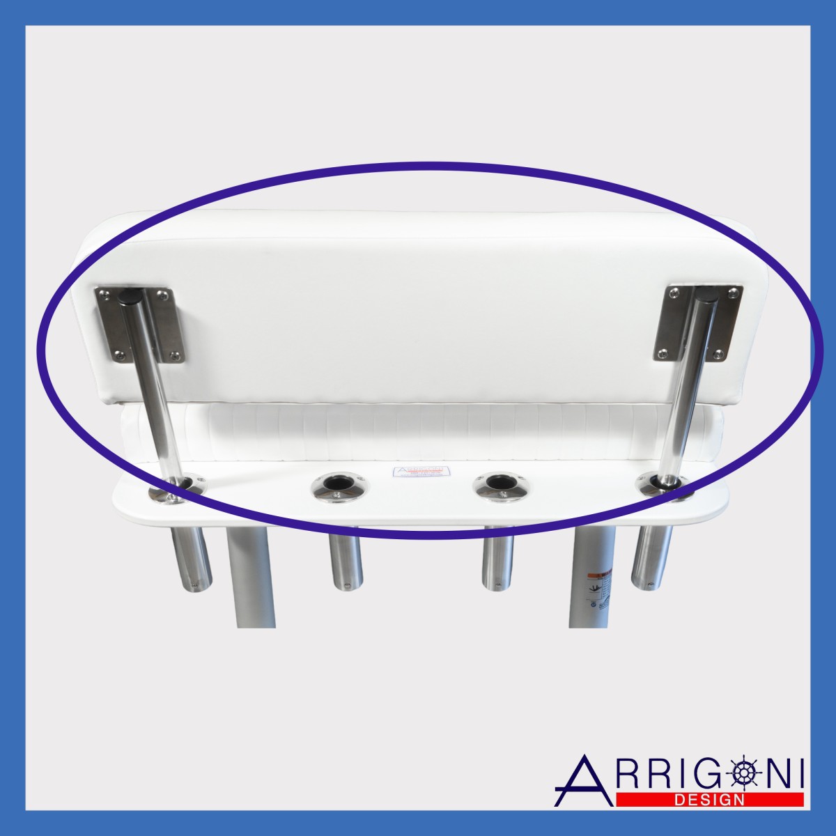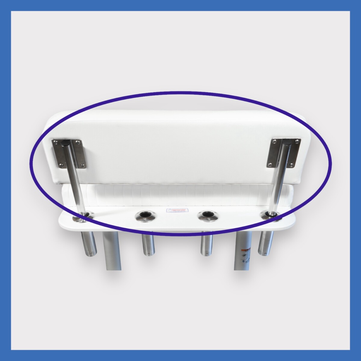 Our custom-made backrest kits will slide into any leaning post – Arrigoni or other – to provide a more comfortable ride. Simply drop the back rest into your existing rod holders. With a solid starboard core and stainless steel hardware, this leaning post backrest product is built to last. You can customize the size, upholstery, and configuration to meet your exact needs. With nearly 3 decades of experience, we are always happy to discuss what we can build to improve your boating life.