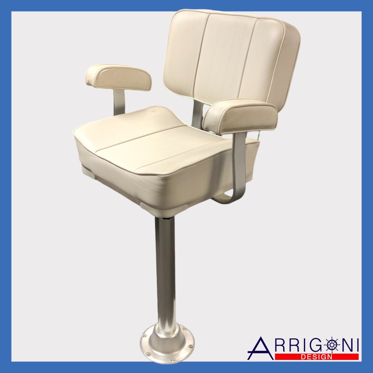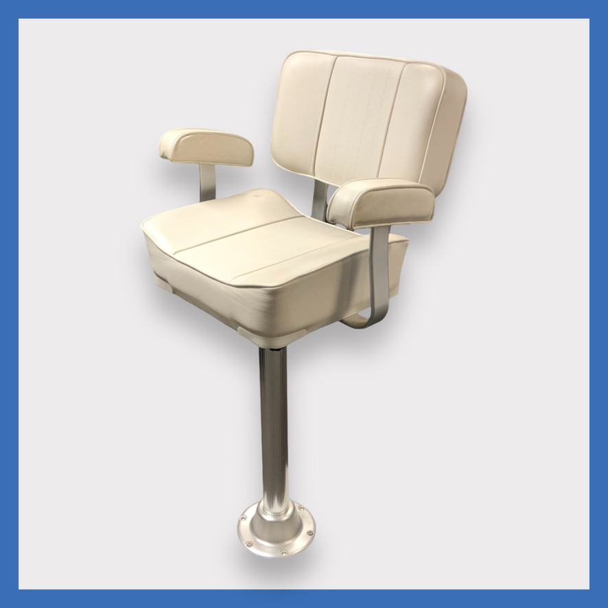 Our UC-1 upholstered captains chair is the perfect replacement helm seat for added comfort and durability. The internal chair frame is made of maintenance-free plastic with anodized aluminum arm and back supports. Upholstered in marine-grade vinyl with high density foam cushions. The UC-1 is equipped with our smooth slide and swivel assembly allowing for easy installation on your existing pedestal (or mount to any flat surface).