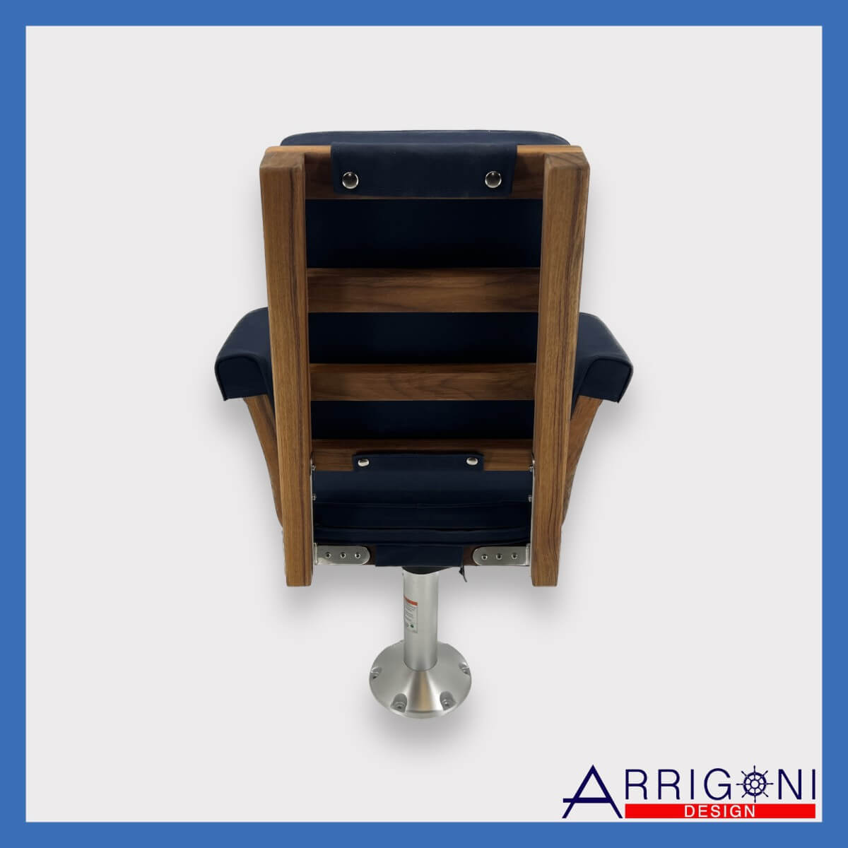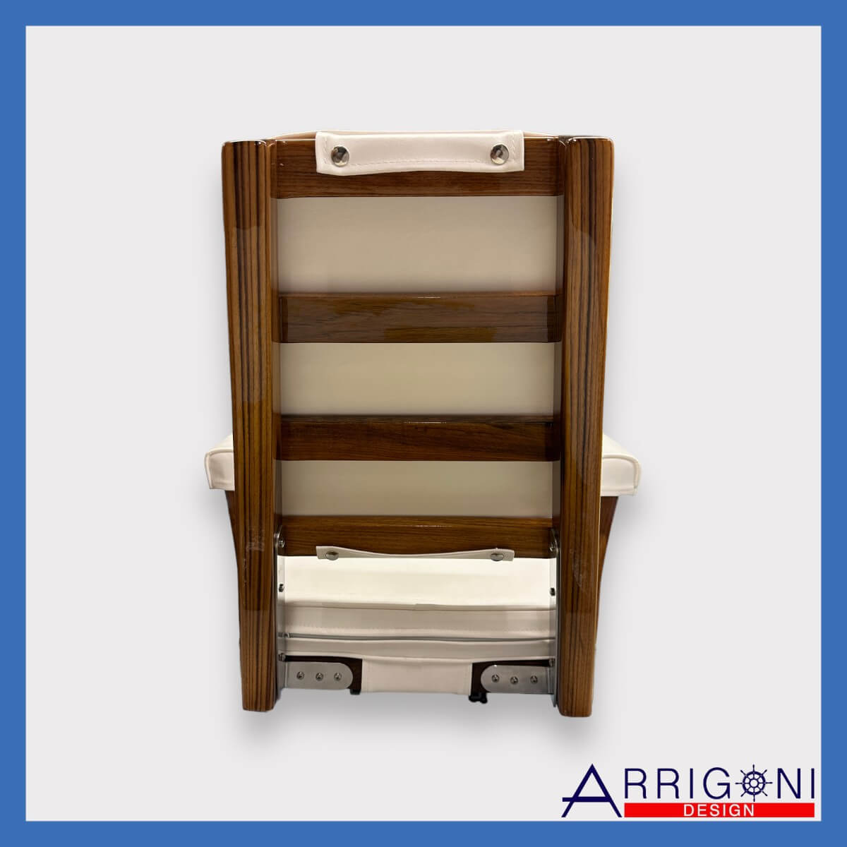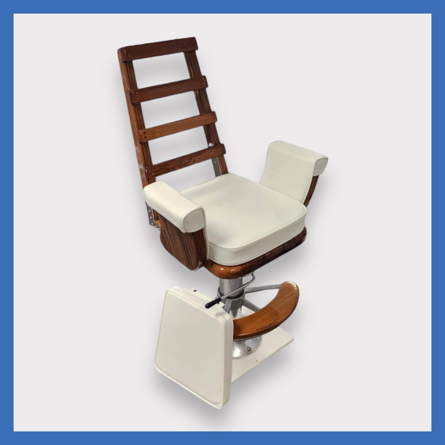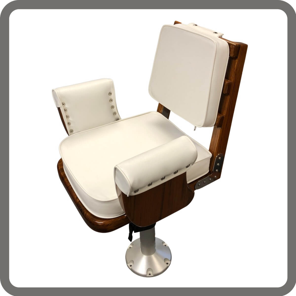 Handcrafted in our Connecticut shop, our traditional ladder back helm seats are top of the line. Each chair is built-to-order and fully customizable. This armless model is constructed of solid teak wood with a four rung ladderback, permanently attached with stainless steel brackets. Enjoy a fully detachable cushion set in double-stitched marine grade vinyl. Seat swivel assembly included for easy installation.