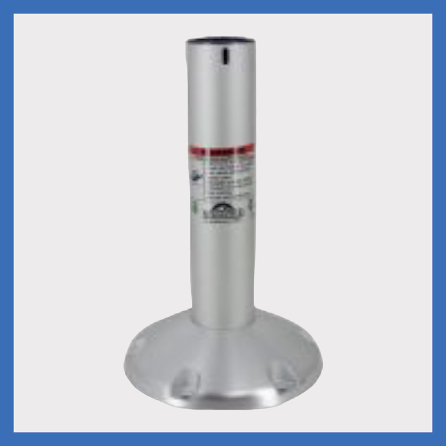 Fixed height 30″ aluminum pedestal for table or helm seat 9″ Base with 8″ Diameter hole pattern Permanent mold base is made from high magnesium content aluminum for corrosion resistance Compatible with: