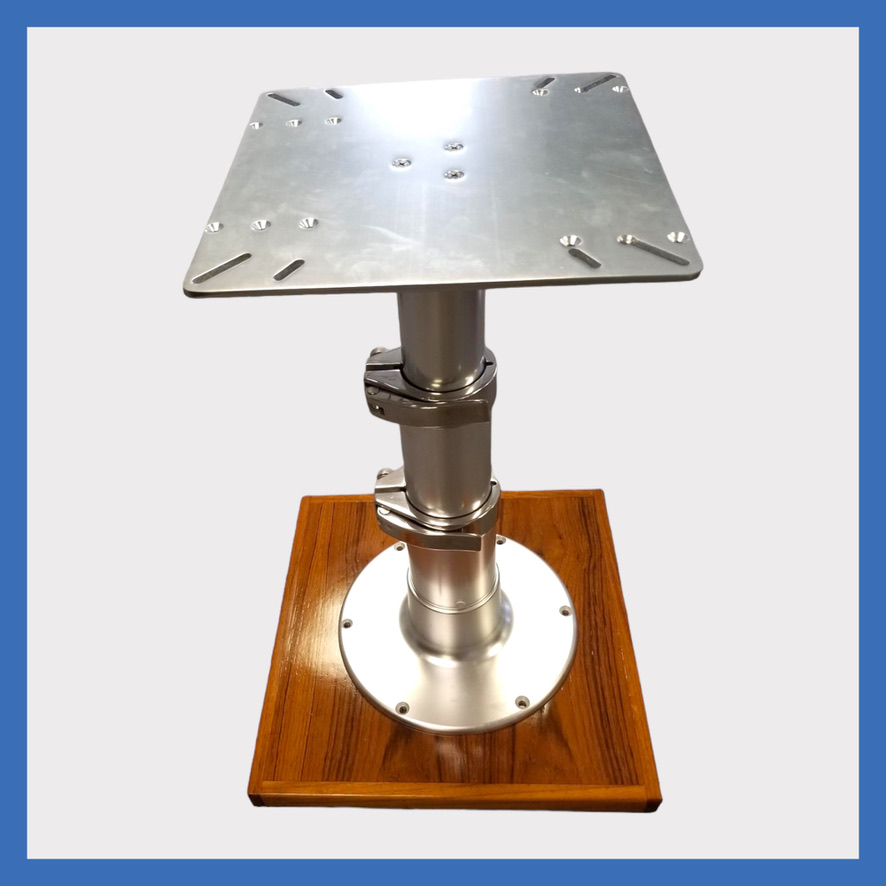 Looking for a pedestal to convert your dinette to a berth? Our two stage adjustable height pedestal is just what you’re looking for. Height ranges from 13” to 29” allowing you to set it at the exact height you need. Also works beautifully for most helm seats. Fits a standard 2 7/8” swivel. Shown here on an optional custom teak floor base. Compatible with: – Swivel 2 7/8 – Slide Swivel 2 7/8 – 12 Inch Deck Plate