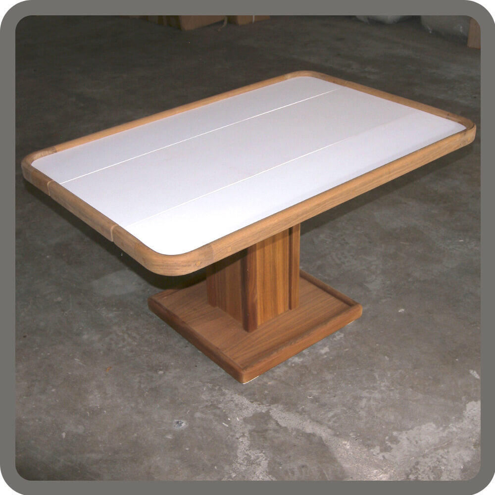 Since 1994, Arrigoni Design has specialized in handcrafting custom table tops, built to your exact specifications. Our tables and table tops are built-to-order in our Connecticut shop using the highest-quality materials. To add value to the boat, we provide custom desk table tops of wood in any size, shape, or style. We also offer stunning inlays and overlay decals in any color (contrasting wood, gold leaf, etc.). We promise: if you can dream it, Arrigoni can build it.