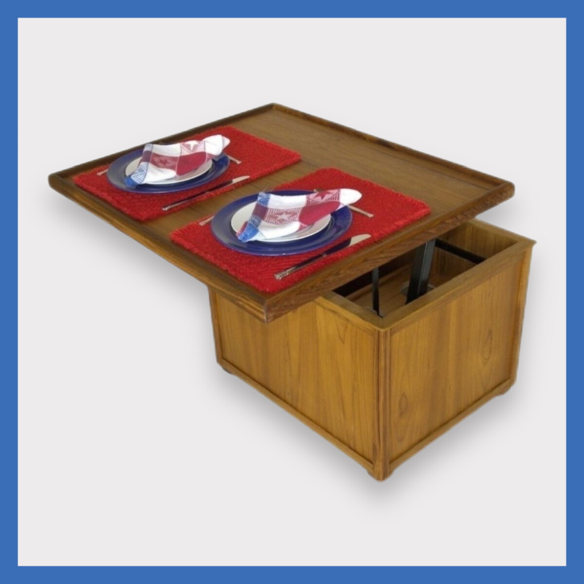 - Choose any style table top: fold over, fold under, traditional drop leaf, pull up with storage