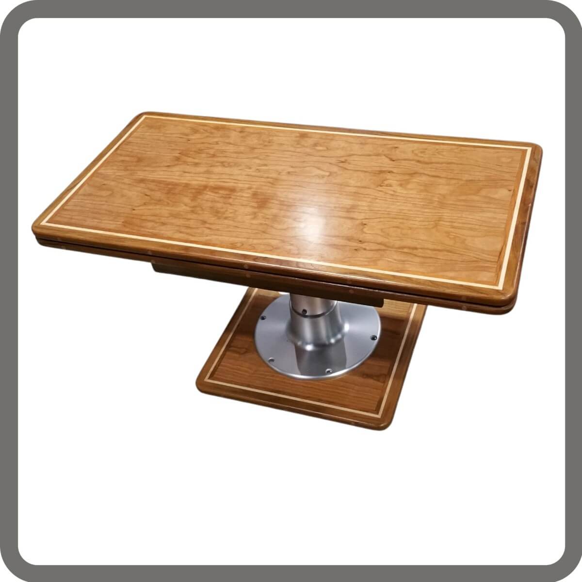 Our Single Fold Over Leaf Table Top is an adjustable table top crafted of solid wood in a variety of shapes and sizes. A fold over leaf design maximizes versatility & functionality of your tabletop while saving you space when not in use. Choose from one of our base options or mount on your existing pedestal. Select from a variety of standard options below or contact us for additional customizations.