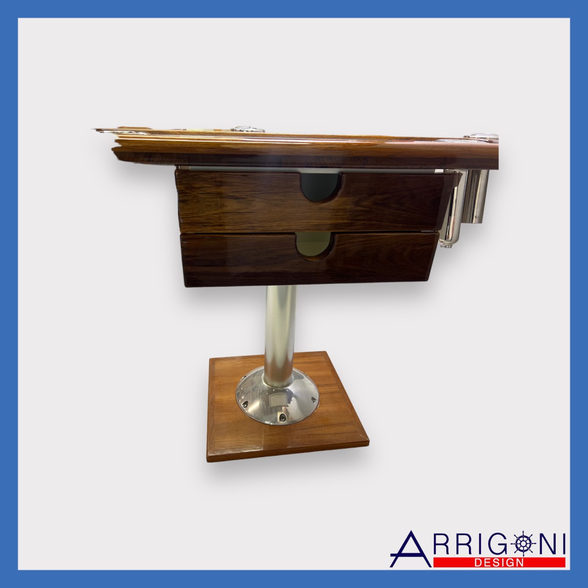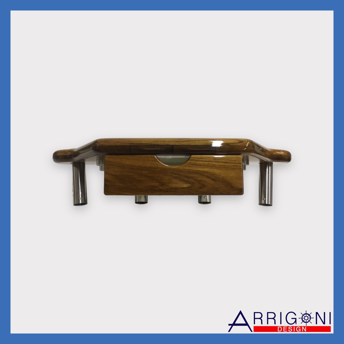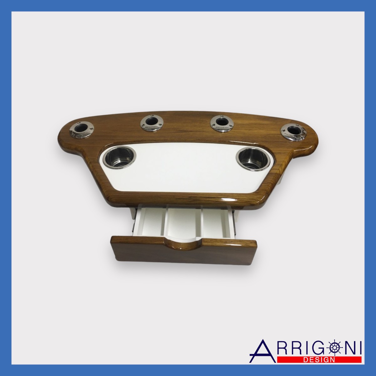 Arrigoni’s rod holder rocket launcher is a beautiful and functional accessory for your vessel. Hand crafted from the highest-quality materials in our Connecticut shop, we produce unlimited customizable options. Offering King Starboard and/or teak construction, all sizes, layouts and designs are available to meet your fishing demands. Decide your rod and cup holder layout, drawers for bait, terminal tackle, or lures, and multiple non-skid options. Working on a smaller platform? Our pedestal design allows boat owners to remove the pedestal and rocket launcher when not needed. Call today discuss pricing and build options!